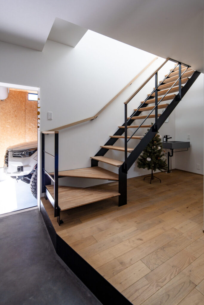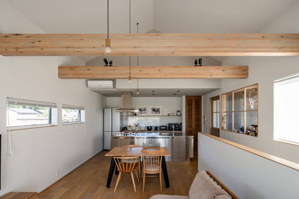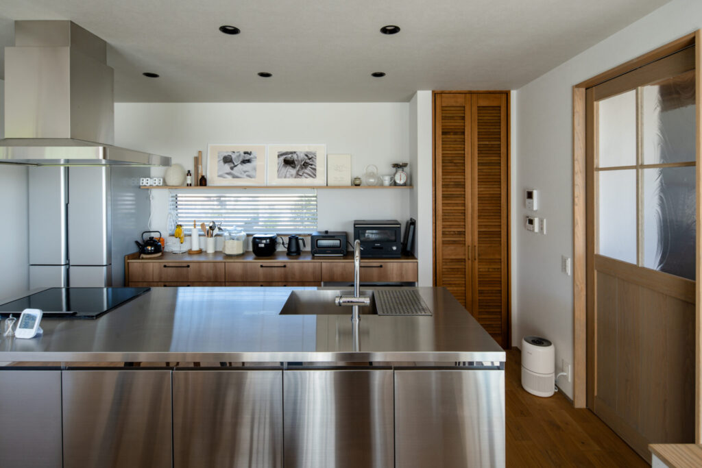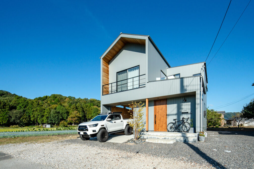 建坪を抑えながらガレージを実現し、田園風景のパノラマを日常に取り込むため、リビングは2階に配置。窓いっぱいに広がる景色が、暮らしにのびやかな開放感をもたらした。ご主人がこだわったインナーガレージと、奥さまが選び抜いたステンレスキッチン。それぞれの「好き」がかたちになり、家族の時間に自然な彩りを添えている。引き渡し後に訪れたとき、ガレージとキッチンはさらに手を加えられ、見事に暮らしの一部となっていた。この場所で、これからもたくさんの思い出が紡がれていくのだろう。