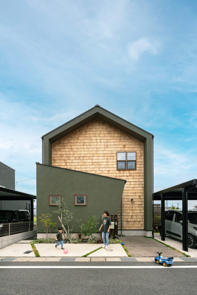 ご主人の仕事先と奥さまのご実家、どちらにも程よく通える場所を求め、沿線道路近くで見つけた土地。南からたっぷりと光が差し込む、広々とした敷地だった。