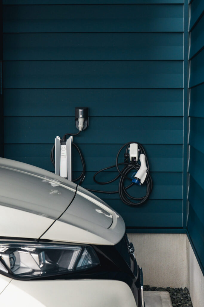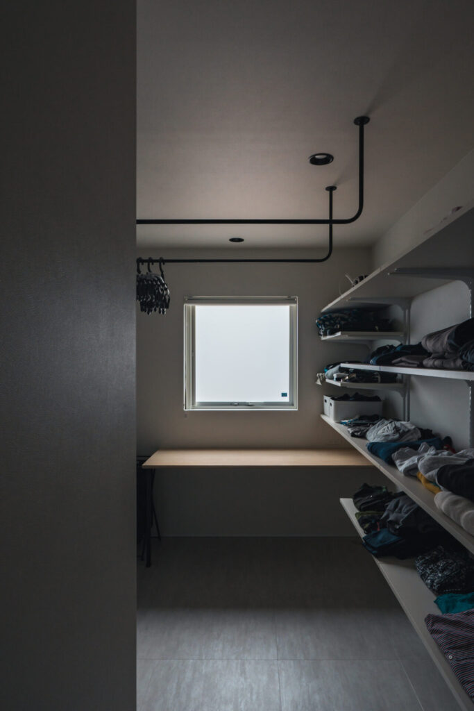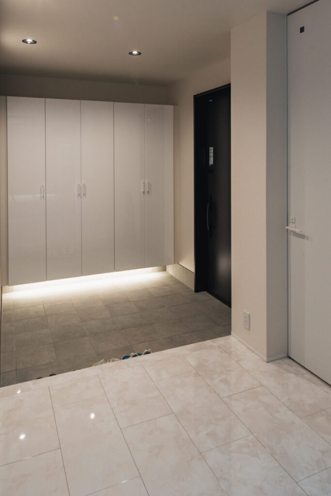 カラーや素材も車の存在が映えるように統一し、暮らしと愛車が自然に調和する空間に仕上がっている。